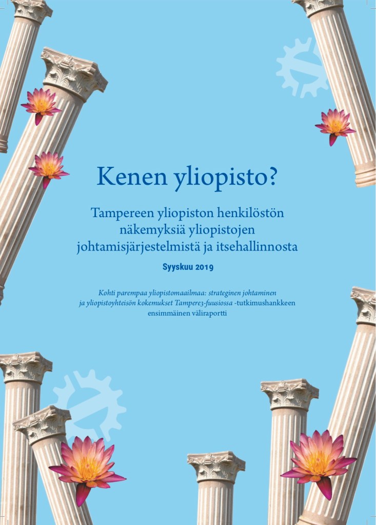 The project’s first research report Kenen yliopisto? Tampereen yliopiston henkilöstön näkemyksiä yliopistojen johtamisjärjestelmistä ja itsehallinnosta (In English: Whose university is it? Tampere University staff views on university leadership structures and university autonomy) was released on September 2019. It can be found in TREPO (open access). Updated 2nd edition of the report includes an extended English summary.